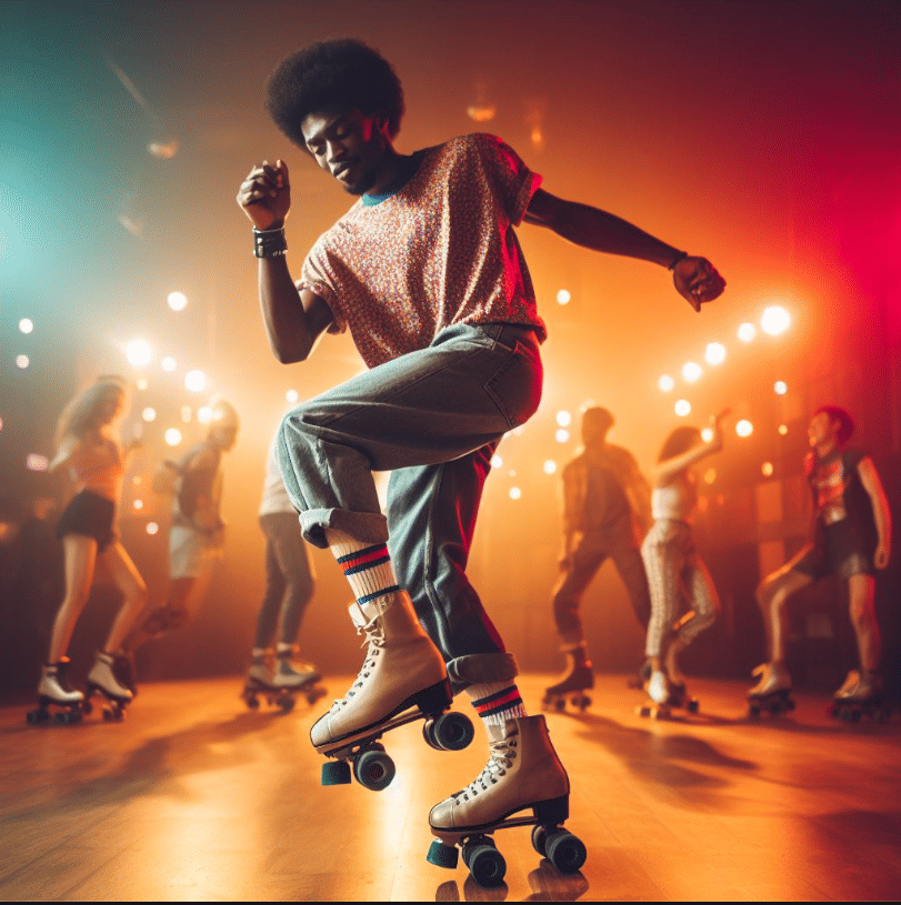 Dancing while on roller skates to popular music is often called “shuffle skating,” “jam skating,” or “rhythm skating.” “Jam skating” is a style of dancing on skates that uses gymnastic and athletic dance movements. “Shuffle skating” is a variation of jam skating that focuses on moving to the rhythm of the music. Jam skaters often wear skates with low-cut boots and have larger and softer wheels than those worn by shuffle skaters, which give jam skaters more traction and control. Shuffle skaters sometimes wear skates with high-cut boots and their skates have smaller, harder wheels, which allow the skates to slide on the floor during dance moves.